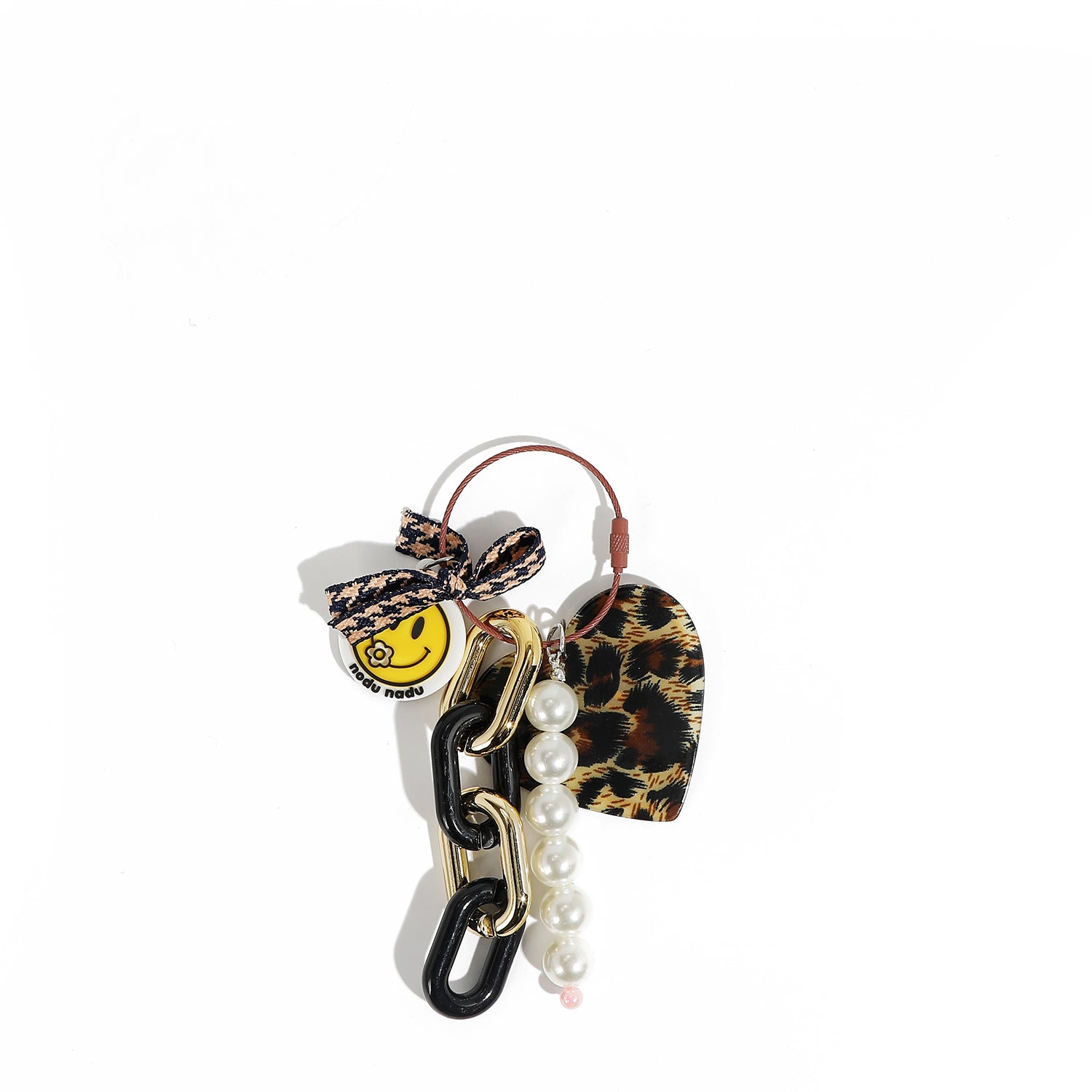 Jolene es la definición de estilo atrevido. Un corazón con estampado de leopardo y la inscripción "Love" cobra protagonismo, enmarcado por un elegante lazo de pata de gallo y una delicada correa de perla. Los detalles de cadena en negro y dorado completan el look con un toque moderno.