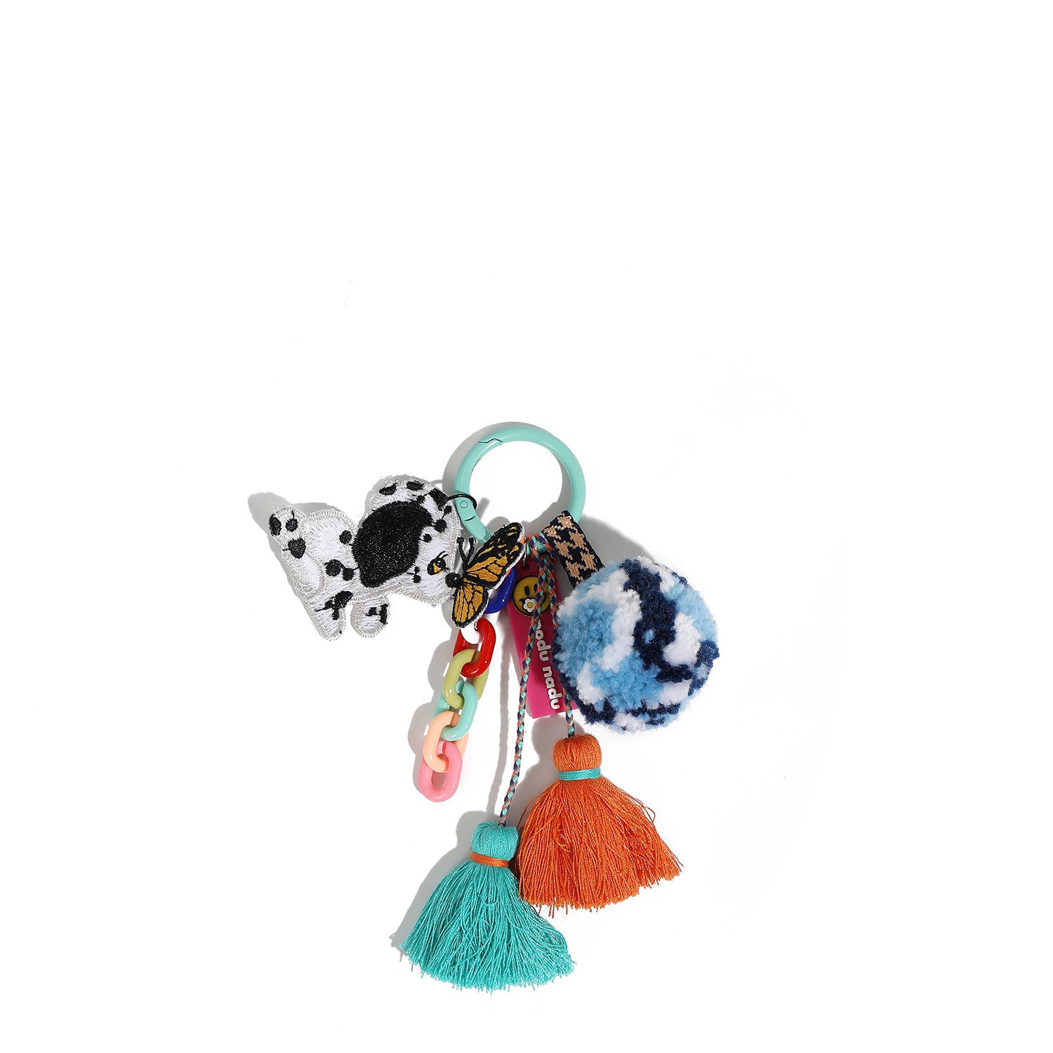 ¡Demasiado adorable para resistirse! Este alegre dije para bolso tiene un pompón colorido, borlas divertidas y detalles de cadena atrevidos. ¿Pero la verdadera estrella? ¡Un adorable cachorro dálmata dándose un tierno beso de mariposa!